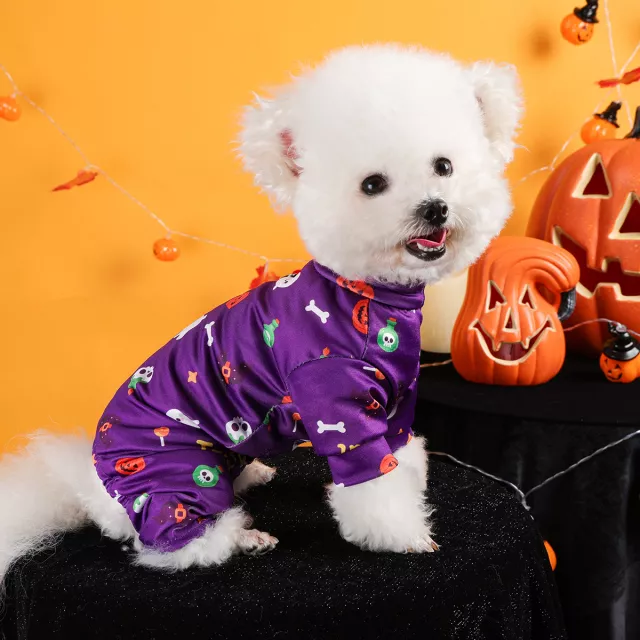 Halloween Dog Pajamas – Purple Puppy Jumpsuit with Four-Legged Pants